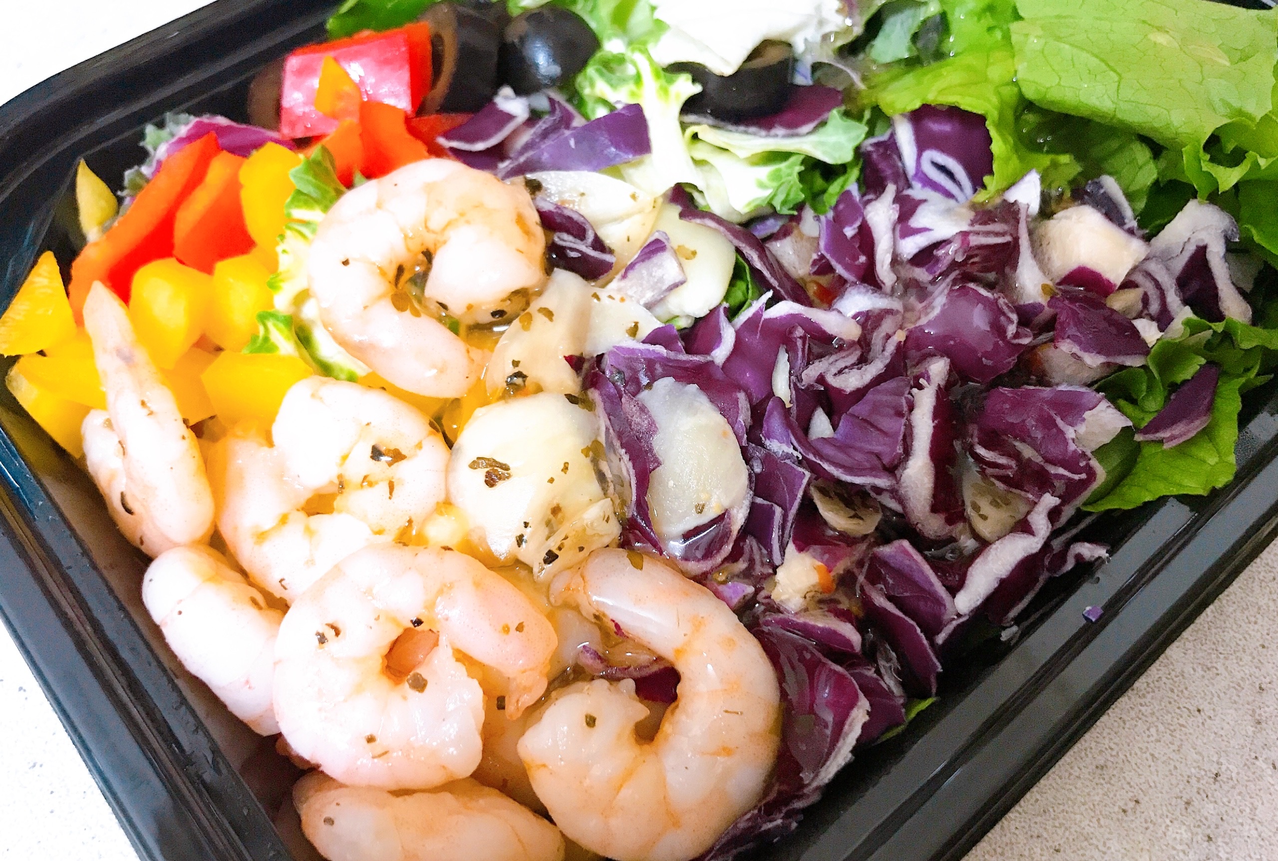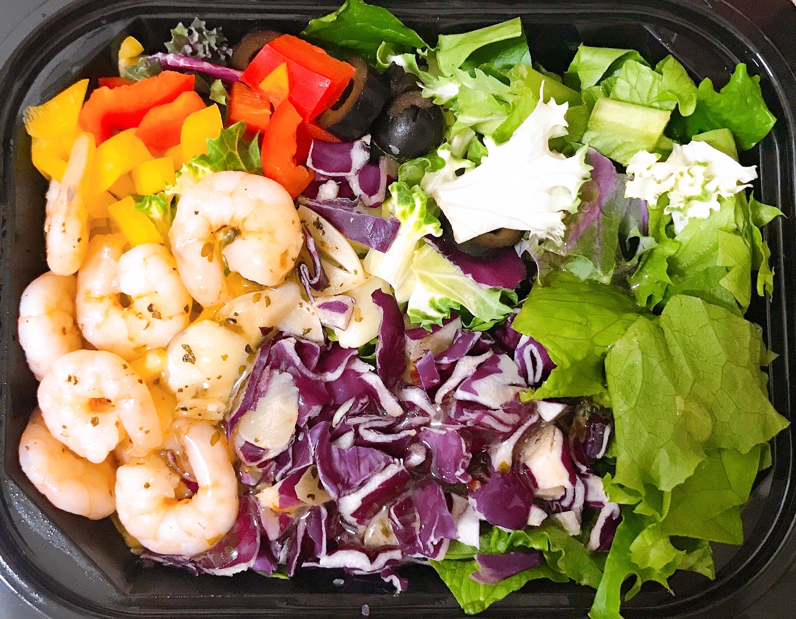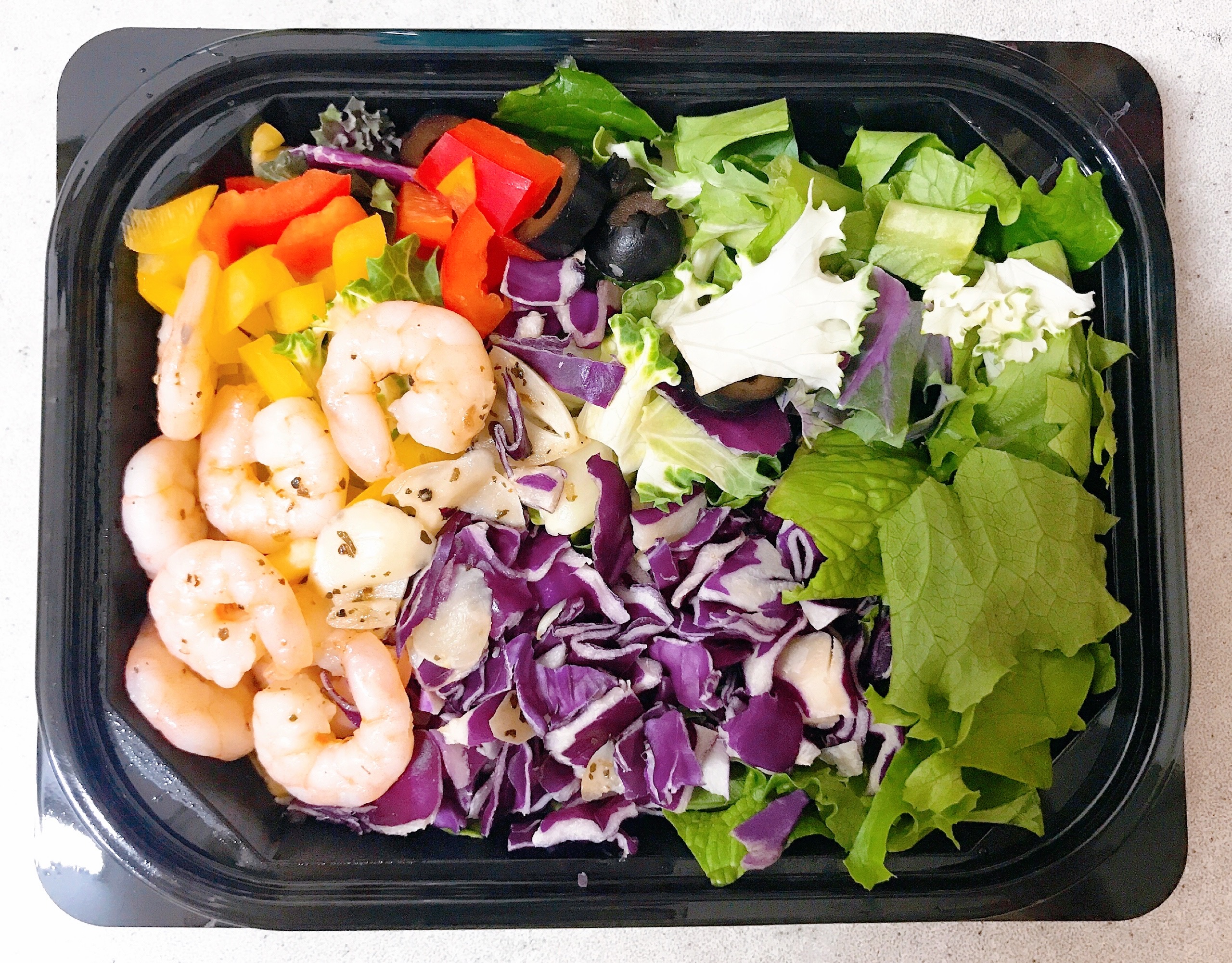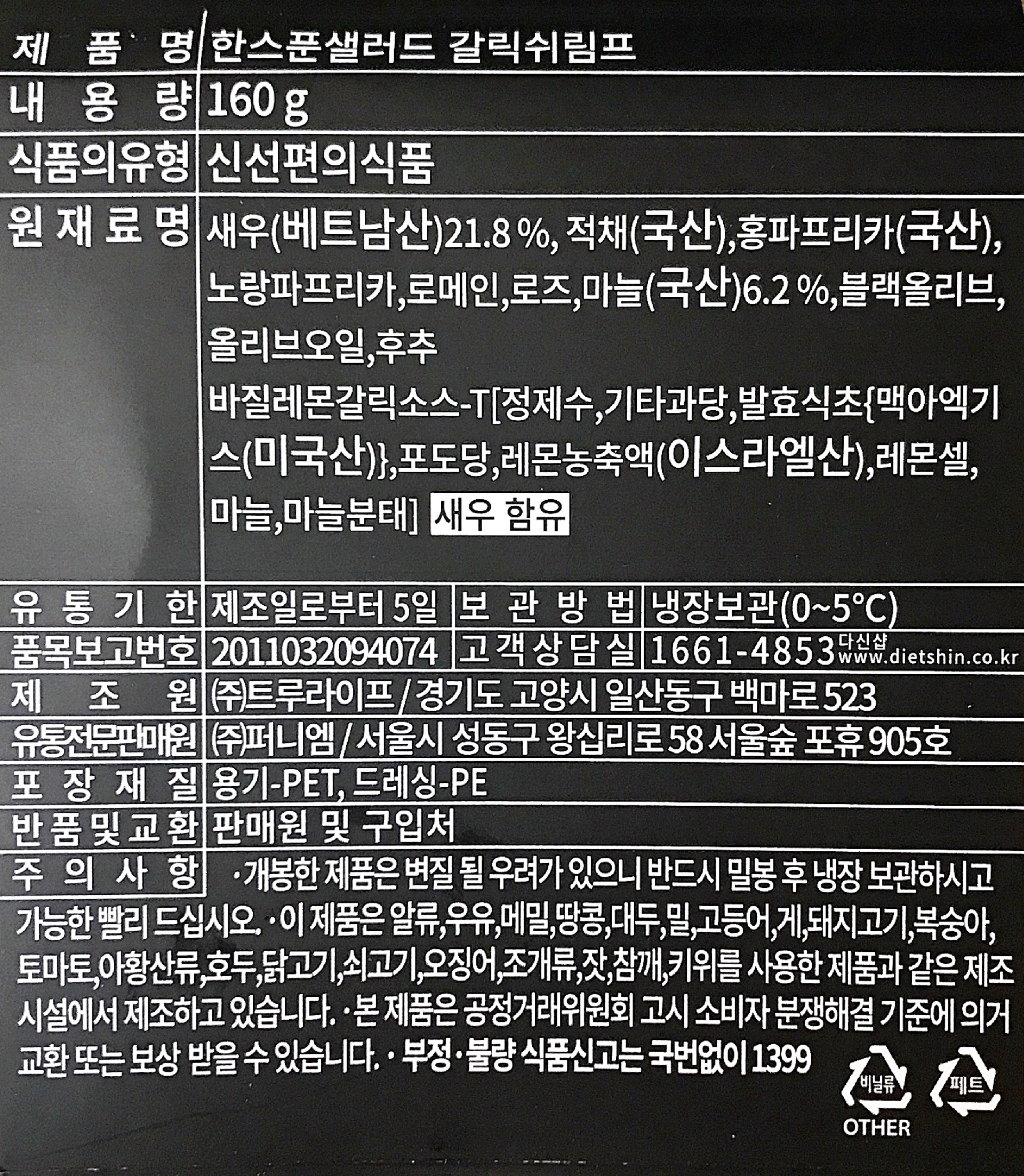 가장 먼저 먹은 샐러드는 1번ㅋ 갈릭쉬림프 샐러드로, 6가지의 다신샵 한스푼샐러드 중에서 가장 깔끔하고, 담백한 맛이다.