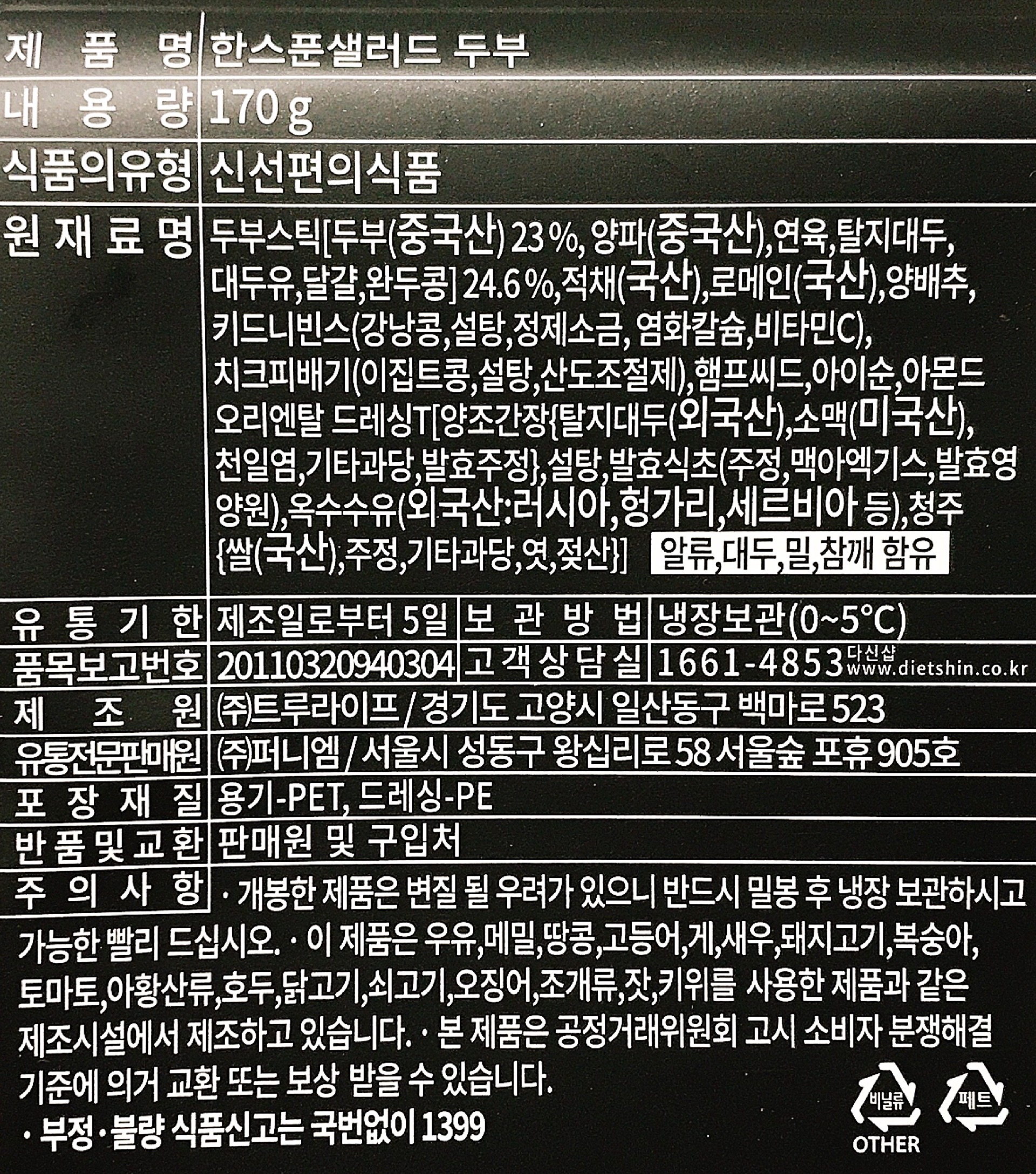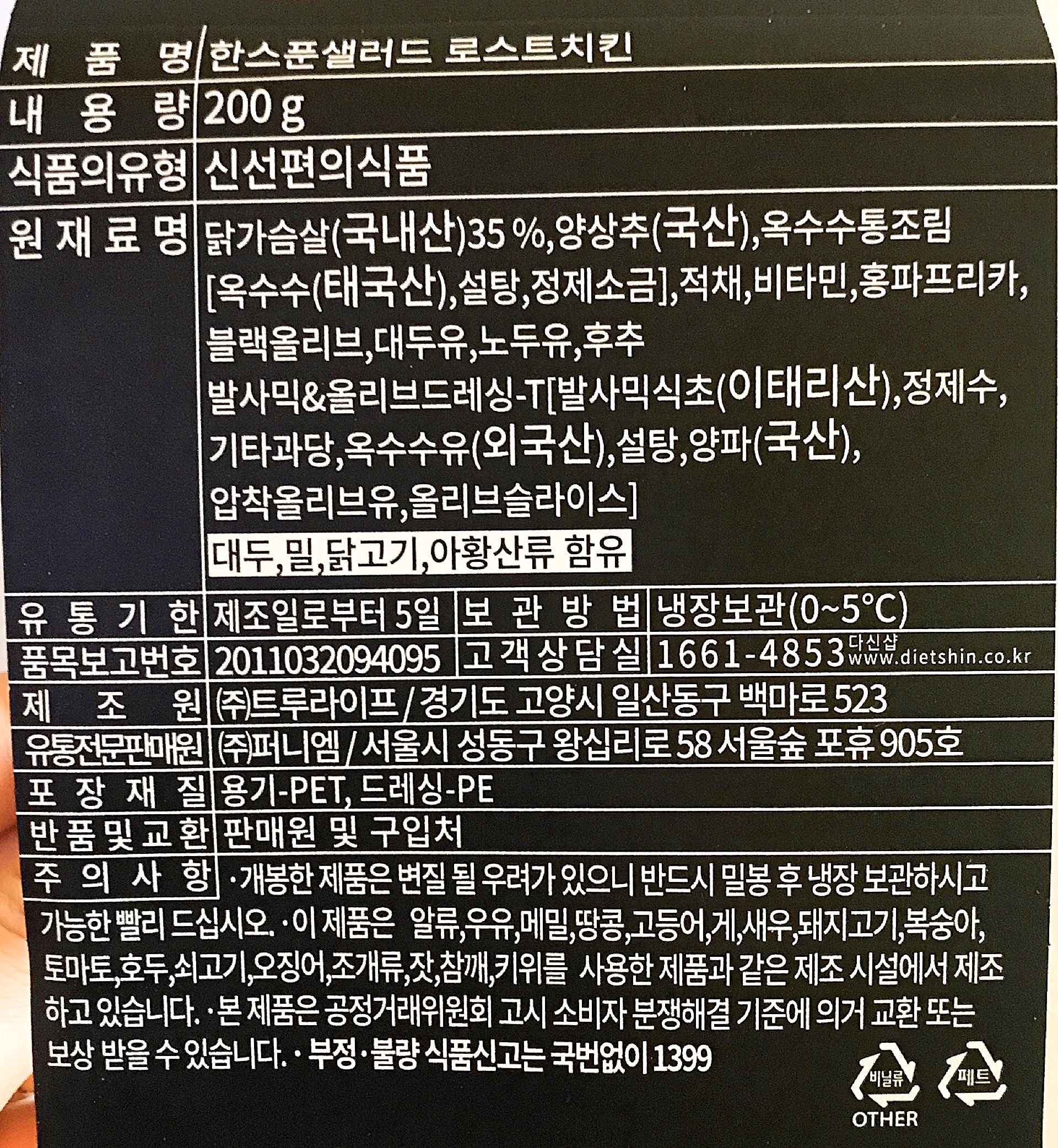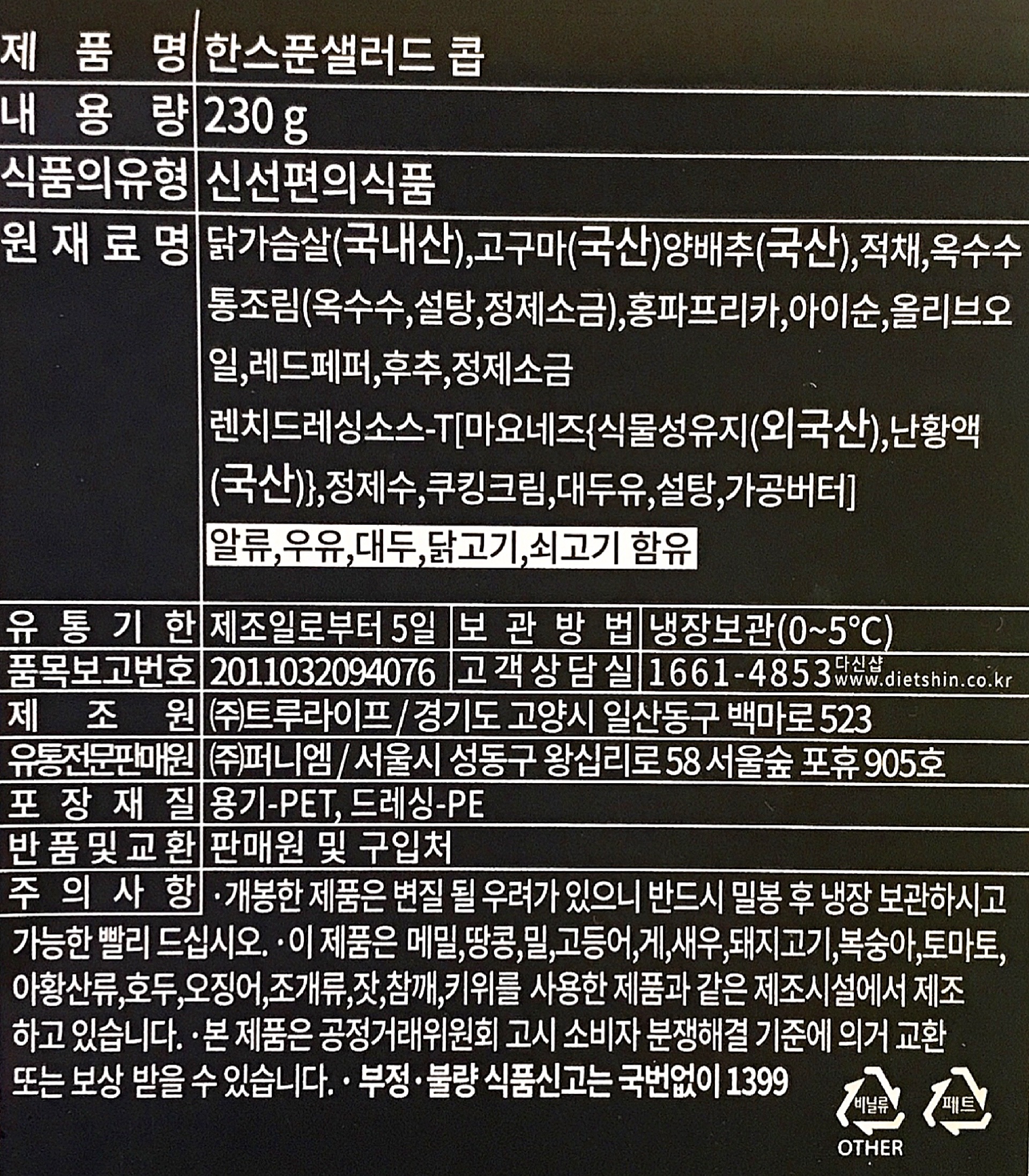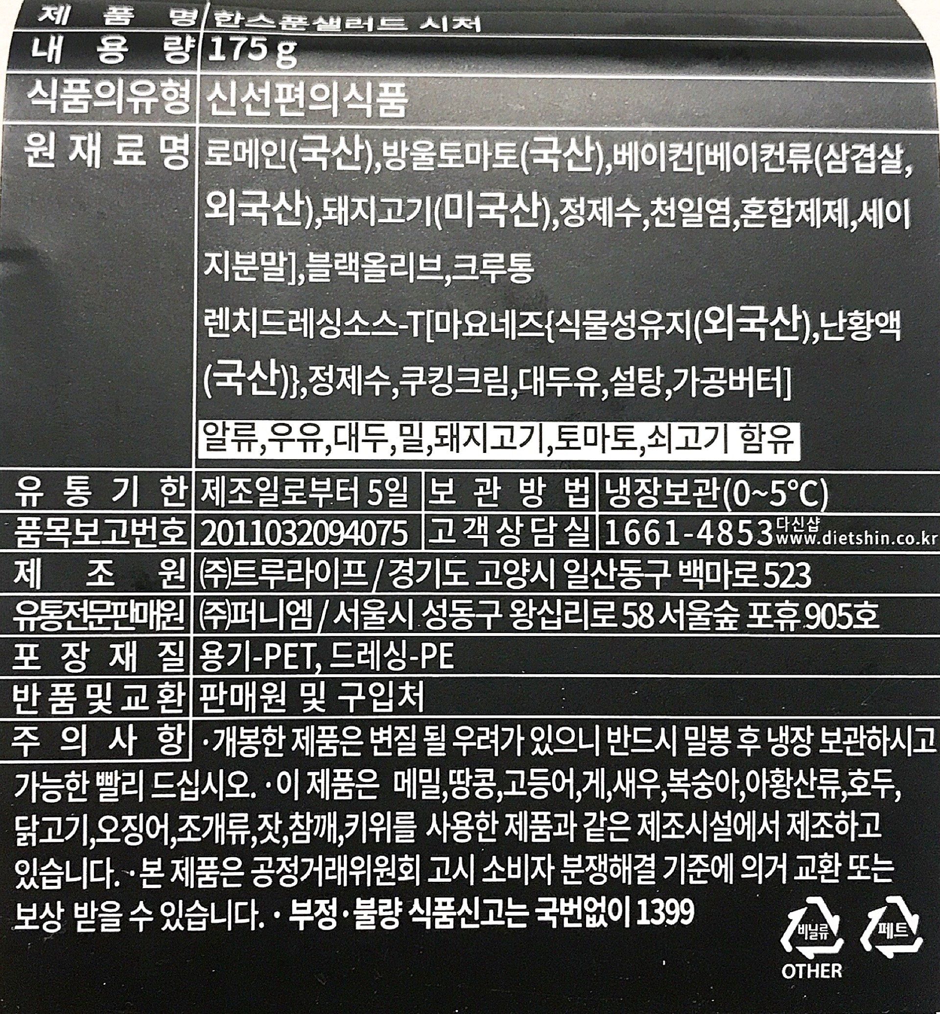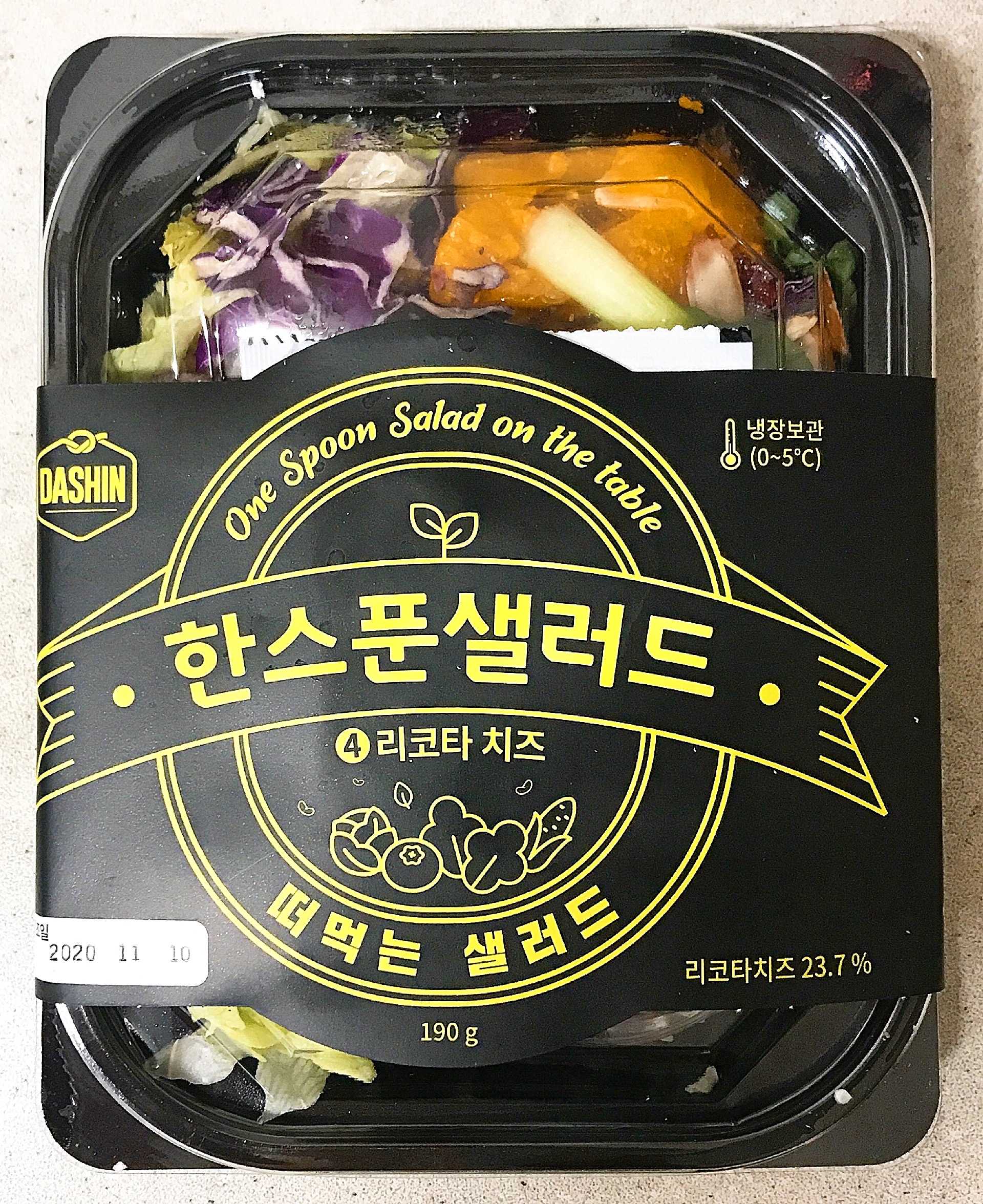 샐러드가 생각날 때 종종 구입하는 샐러드 중 하나가 다신샵 한스푼샐러드인데, 이건 예전에 궁금해서 먹어본 후로 맛있어서 온라인으로 샐러드 구입할 때 자주 이용하는 편이다.