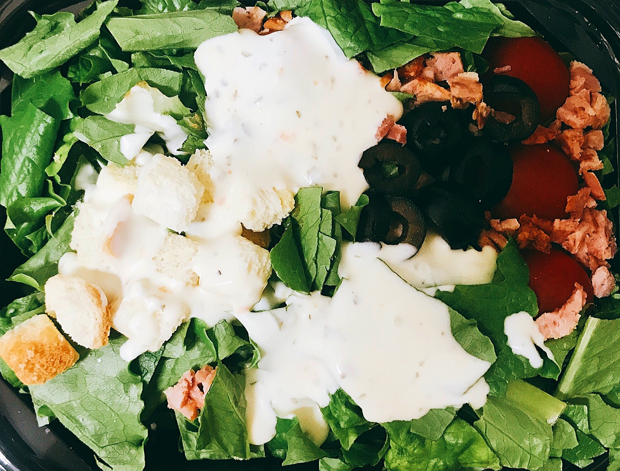 드레싱은 발사믹&올리브드레싱으로 로스트치킨 샐러드에 들어있는 드레싱과 같은 드레싱인 듯 하다.